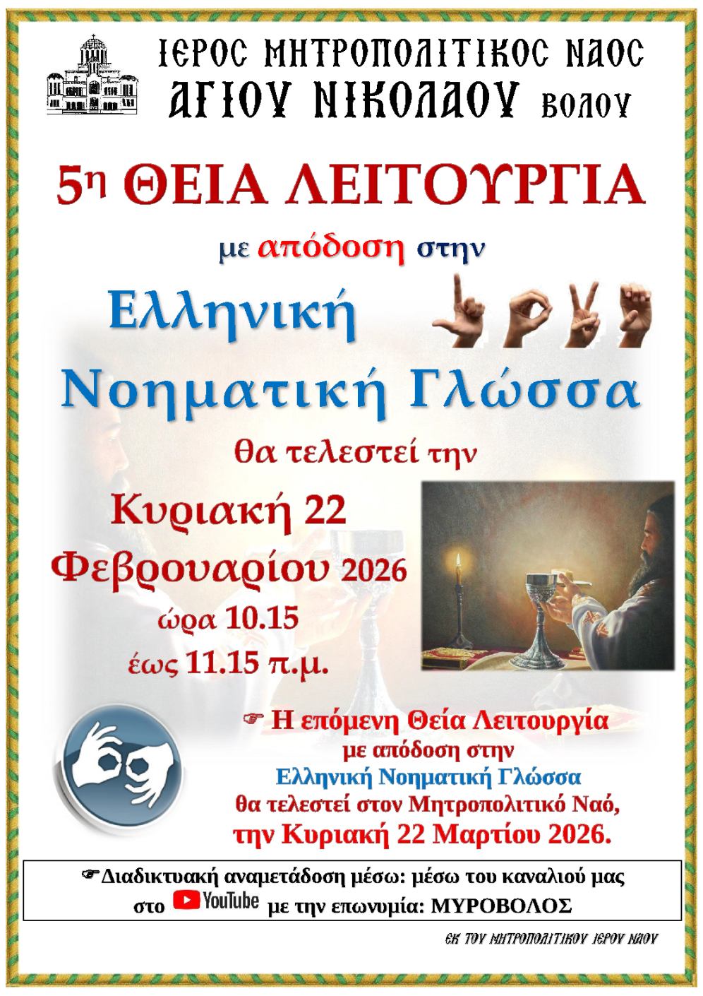 5η Θεία Λειτουργία με απόδοση στην Ελληνική Νοηματική Γλώσσα Συνεχίζεται...