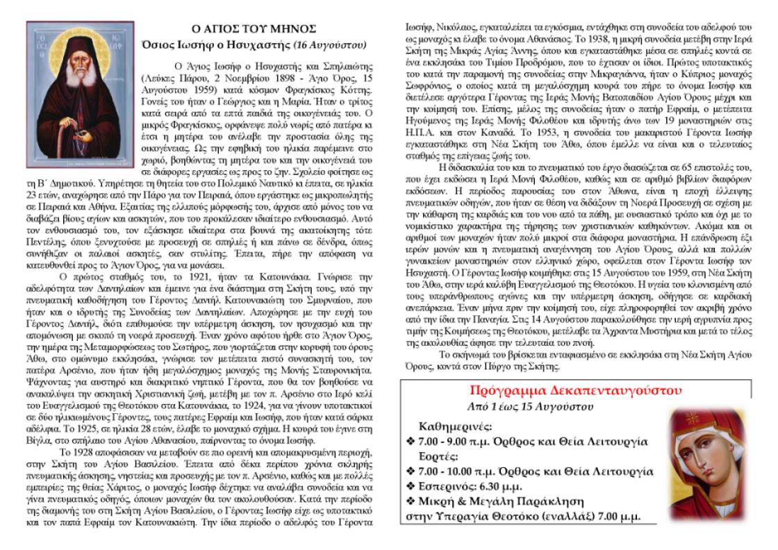 Πρόγραμμα Ακολουθιών – Αύγουστος 2025